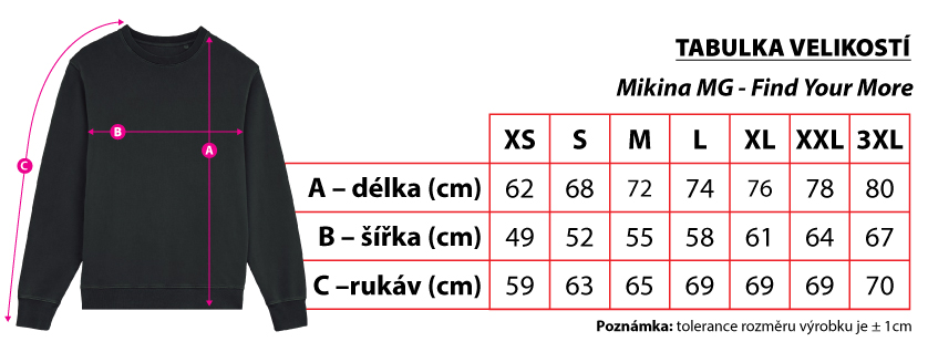 Mikina s logom MG v čiernej farbe. Biele logo na prednej strane nad srdcom, veľký potlač na chrbte s červeným sloganom.